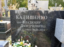 Изначально на месте захоронения находился лишь широкий горизонтальный памятник из чёрного гранита, разделённый на две половины светлым православным крестом. Клиент пожелал выгравировать на пустом пространстве памятник новую надпись, так как на могиле недавно произошло дозахоронение.