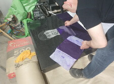 Переходим к созданию портретов на гранитной поверхности. Распечатываем ранее созданный макет, прикладываем его к плите. Под него кладём кальку, обводим ручкой основные линии портрета, убираем всю бумагу. Для проявления линий посыпаем камень тальком.